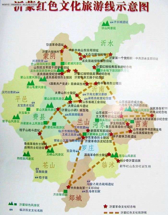 沂蒙山區是我國著名的革命老根據地,這裡曾發生了大青山戰鬥、孟良崮戰鬥等著名戰役,湧現了沂蒙紅嫂、沂蒙六姐妹、厲家寨等一批先進典型。臨沂旅遊局把旅遊的重點放在革命歷史遺跡的開發上,這些遺址大都在山區,自然風光優美,同時也是旅遊勝地。